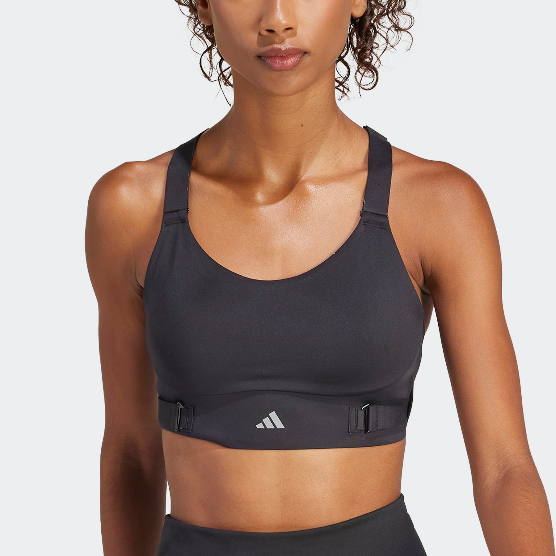 Experience the fusion of comfort and performance with the FastImpact Luxe Run High Support Bra. This workout bra, made in part with recycled materials, features a snug fit and is crafted from a blend of 79% recycled polyester and 21% elastane for a sleek, technical feel. The AEROREADY technology ensures you stay dry during intense training sessions while the adjustable straps and chest band provide a customised fit. With anti-chafe finishes for smoothness and grip dots on pads to reduce movement during workouts, this high-support bra offers an enhanced running experience. Push yourself to go farther and faster in this adidas running bra. The wrapped design distributes weight evenly for a secure, comfortable feel. Customise the fit to your exact needs with the adjustable straps and chest band. Stay focused mile after mile thanks to moisture-absorbing AEROREADY. Experience bounce-free, chafe-free support and run free. This product is made with at least 70% recycled materials. By reusing materials that have already been created, we help to reduce waste and our reliance on finite resources and reduce the footprint of the products we make. A high-support sports bra made in part with recycled materials. Made in part with recycled Materials