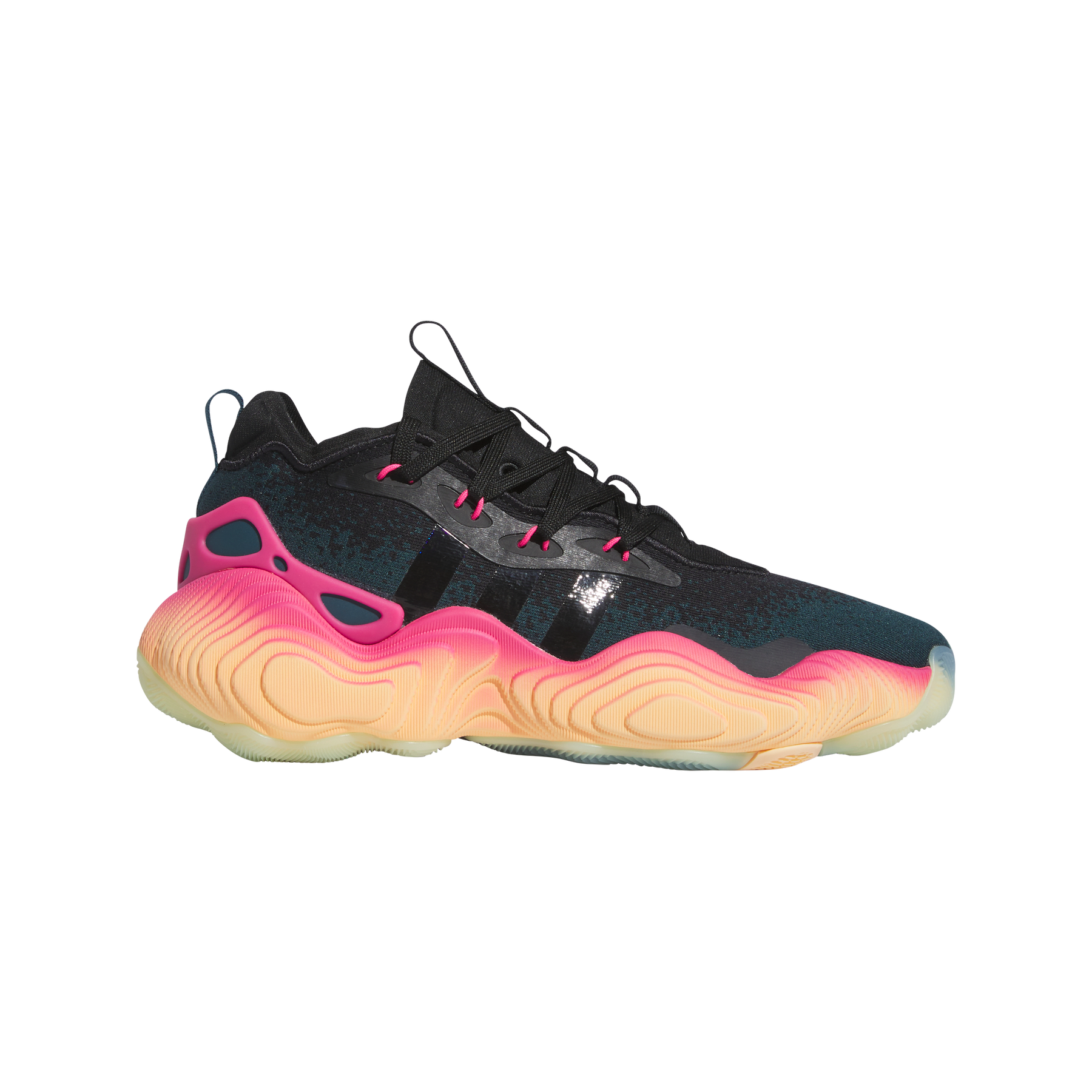 Get ready for what's next. This iteration of the signature trainers from Trae Young and adidas Basketball is all about the future of the game. Celebrating Trae's unique look, crowd-pleasing bravado and expressive, futuristic style of play, these shoes are built for optimised motion and stability, two elements of Trae's game that have elevated him to superstar status. Composite Foam in the midsole ensure your most explosive moves can be done at top speed while an asymmetrical Torsion System provides added support on hard plants and cuts. The mesh upper has strategically placed engineered zones that maximise breathability so you can push the pace for all four quarters, just like Trae.