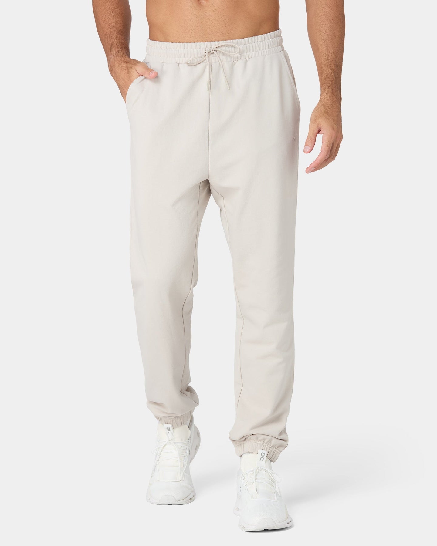 Elasticated waistband with adjustable drawcord Side slip pockets with stitched detailing Soft loopback fabric for all-day comfort Self-fabric cuffed ankles Icon logo on front pocket