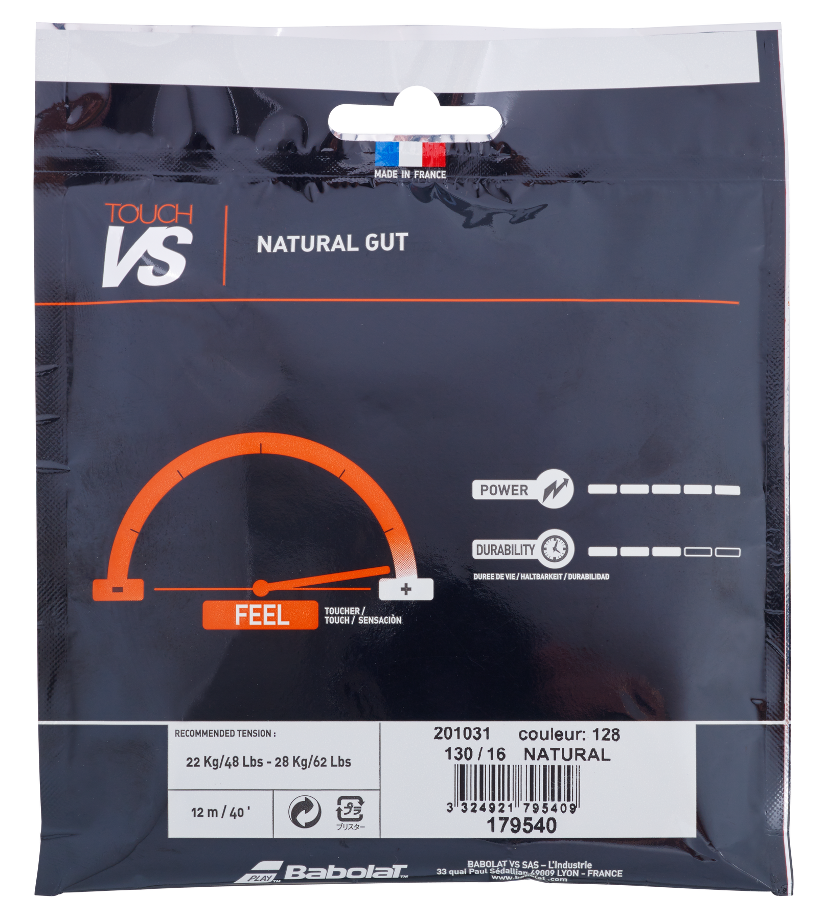 • Collagen from natural fibers makes the TOUCH VS our more elastic string, increasing the contact time with the ball for an unrivaled feel