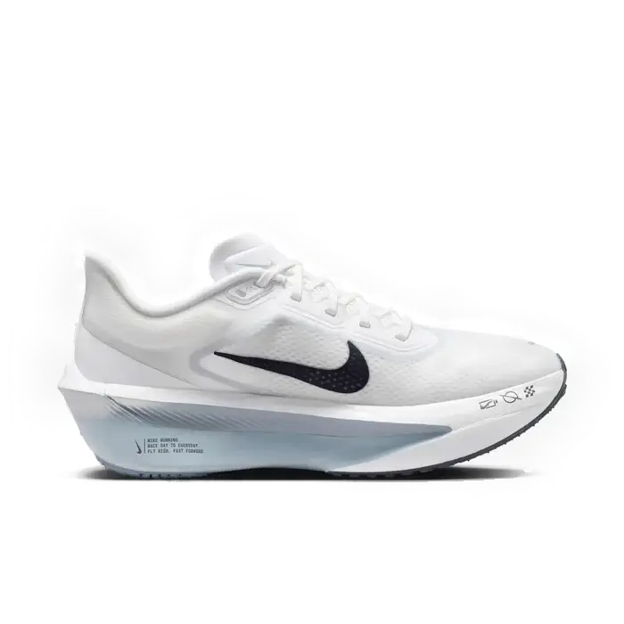 The Zoom Fly 6 is with you every step of your run. Lighter than the Zoom Fly 5, its responsive ZoomX foam adds energy return to each stride, while a carbon-fibre Flyplate helps propel you to the finishing line.