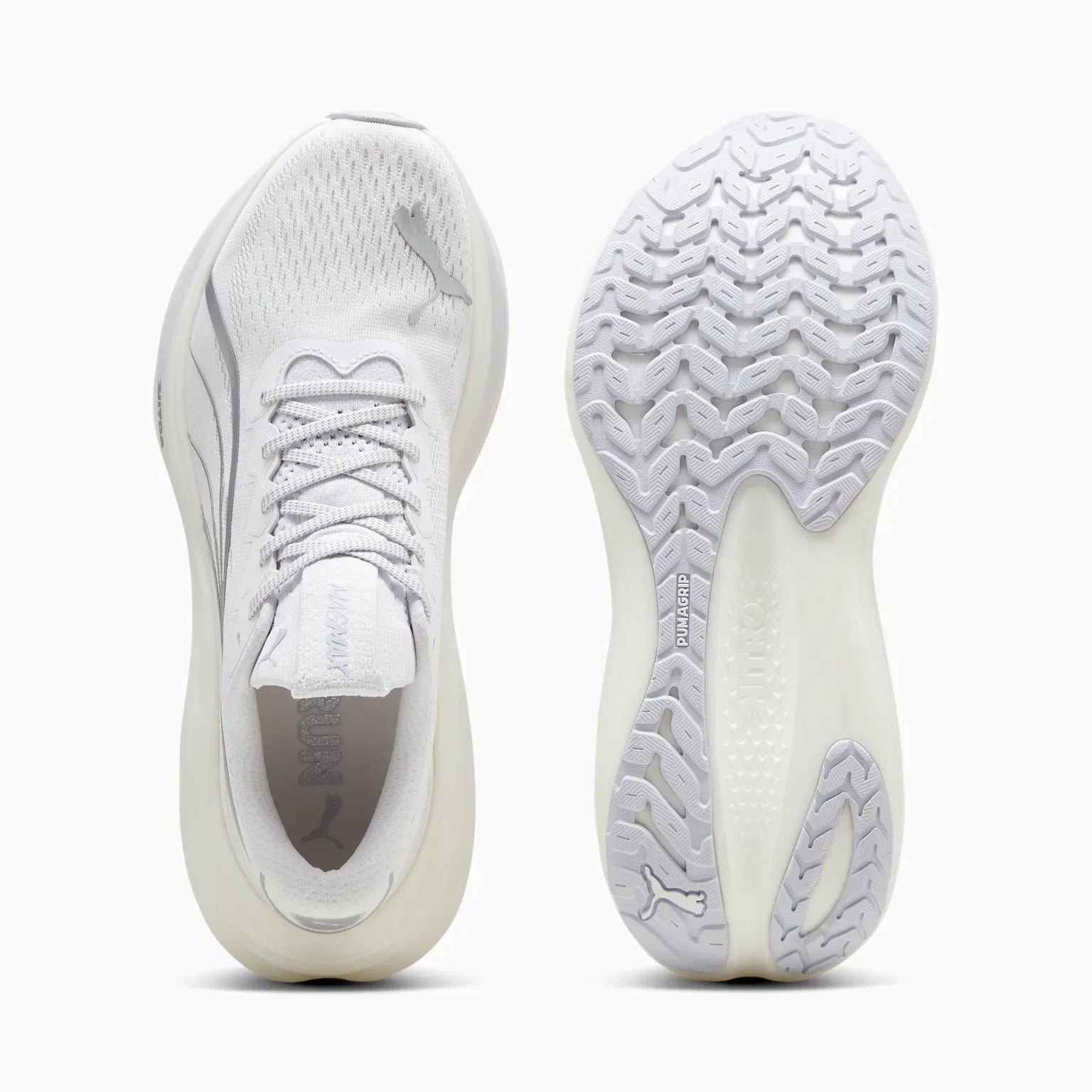 Experience an exhilarating bounce like never before with the MagMax NITRO™. Boasting an impressive amount of cutting-edge NITROFOAM™ technology, these shoes will effortlessly propel you from one mile to the next, filling your stride with excitement and ease. Around the foot you'll find a comfortable mesh, deluxe knitted tongue and cushioned heel. PUMAGRIP protects the precious NITROFOAM™ and provides top-notch traction keeping you steady on your feet.