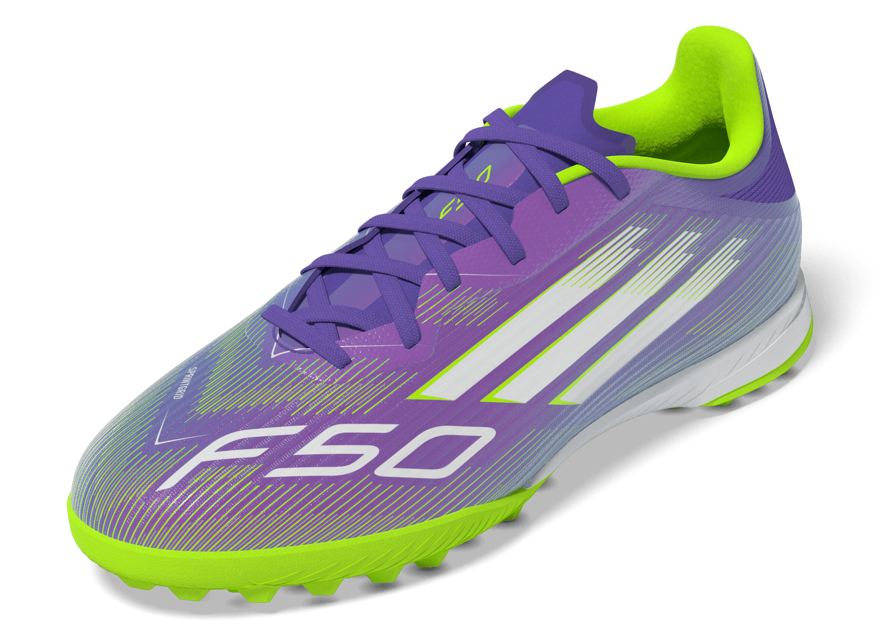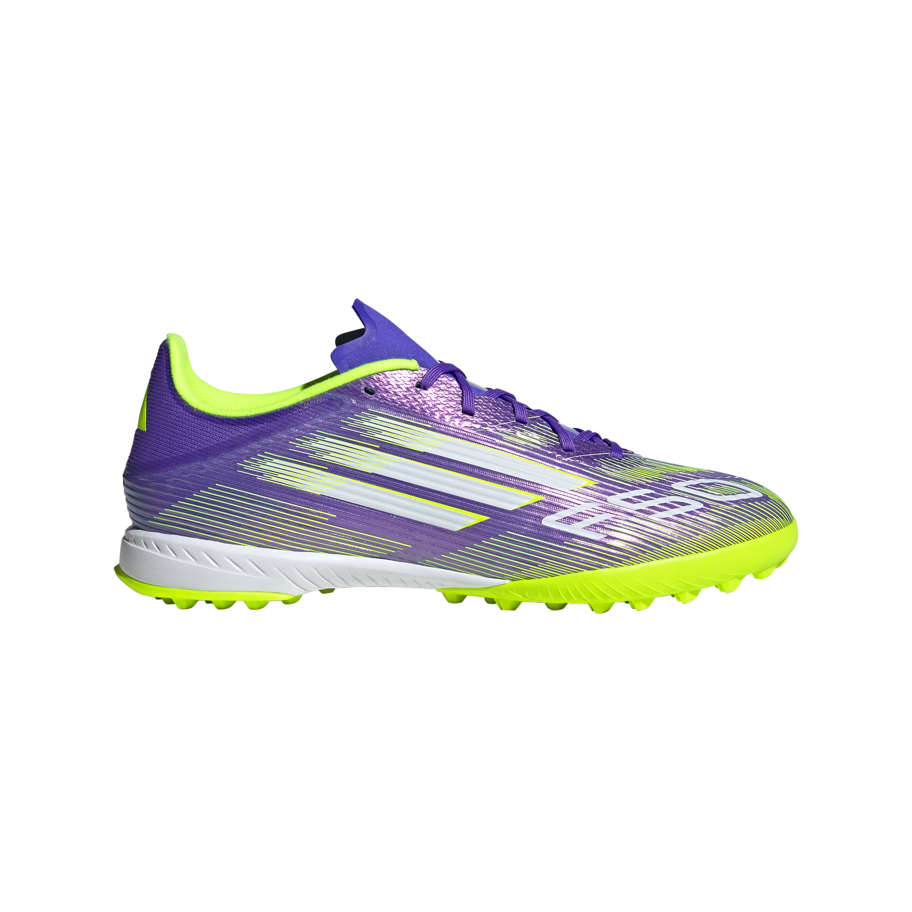 Find your fast to truly express yourself on the field. Feel the rush in adidas F50 boots engineered for speed. Standing out with an eye-catching Sprintgrid print, the Fiberskin upper on these League football boots employs an adaptive Tunnel Tongue for rock-solid lockdown. An EVA midsole and lug rubber outsole team up for comfortable sprinting on artificial turf surfaces.
