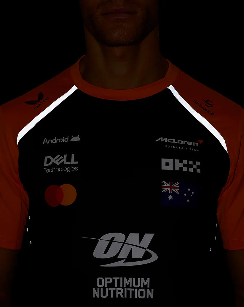 With the Men’s Official Formula 1 Team Set Up T-Shirt, showcasing your allegiance to McLaren’s 81-numbered driver has never been easier. The Mesh back panel and laser-cut underarm holes offer enhanced airflow and ventilation to help maintain composure during tough qualifying rounds, while a dropped hem and close-ribbed collar provide comfort and full coverage in the pit. Screen-printed designs set to appeal to Oscar Piastri fans feature on the back of the T-Shirt, with team logos to finish.