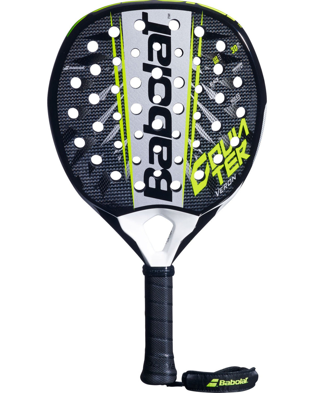 The Babolat Counter Veron is an excellent choice for the experienced and intermediate padel player seeking balance and versatility. This racket is part of Babolat’s Counter Striker line, known for its focus on delivering control and responsiveness to players. With its hybrid shape, this racket offers a great mix of power and precision, while the medium balance point provides a natural weight distribution for better control during play.