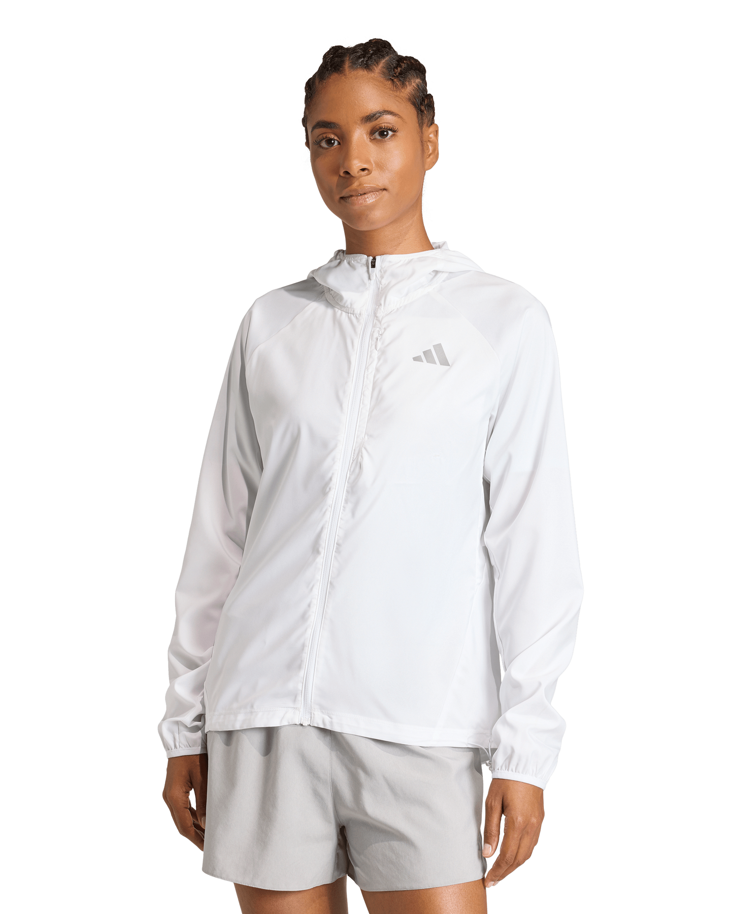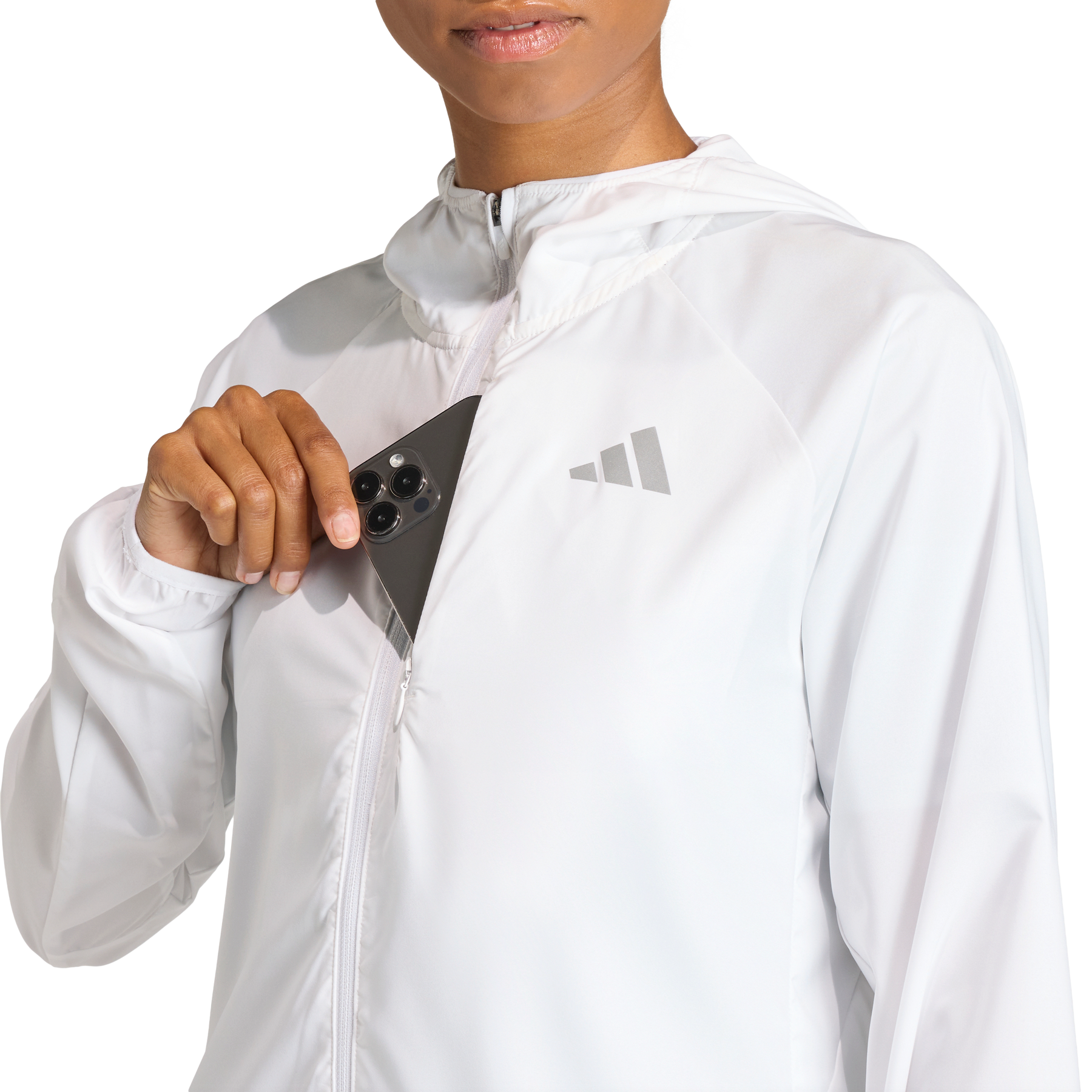 Find your stride with the adi365 Running Essentials Jacket, where simplicity meets performance. A versatile wardrobe option for those who love to run, this lightweight jacket is designed for comfort and freedom of movement. The full zip closure makes it’s easy to layer this performance-focused piece, and the soft fabric makes it comfortable enough for day to day activities. Sweat-wicking properties help keep runners feeling cool and dry for a focused performance, and a zipped phone pocket on the chest keeps essentials close. The adjustable hood makes this a good option in variable weather, and the reflective adidas Performance adds visibility and sporting authenticity. Embrace the spirit of adidas with a jacket made to support your journey, whether you're a beginner or a seasoned runner.