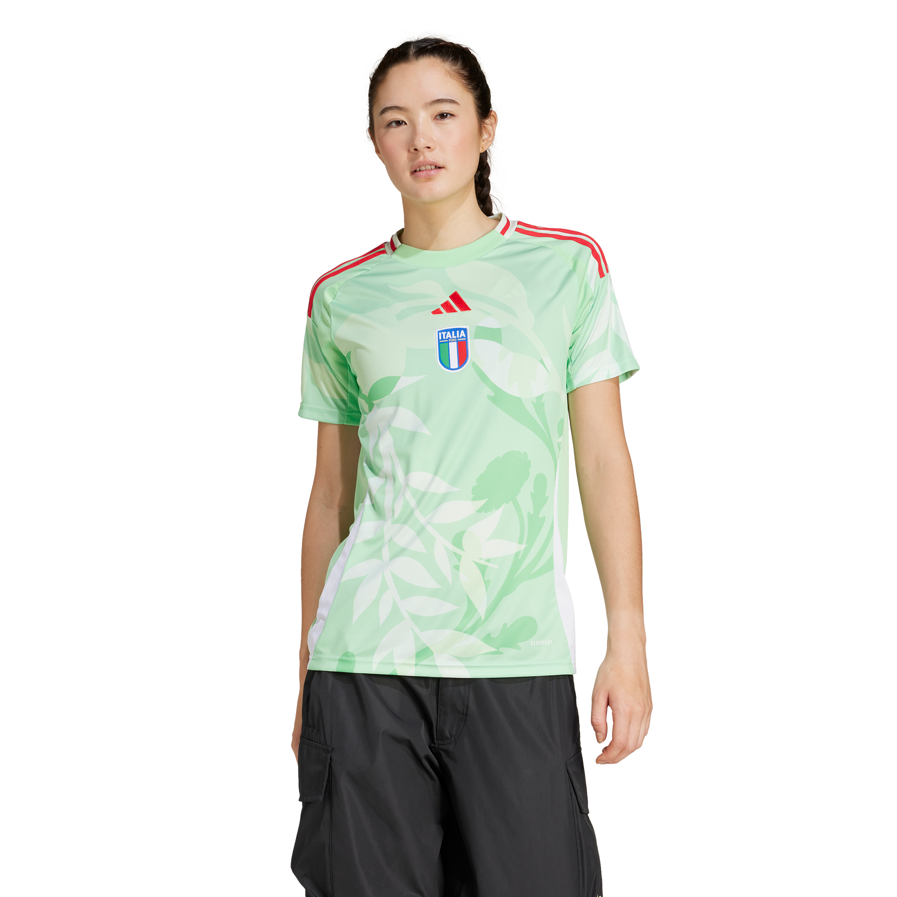 With its bold colours and floral graphics, this eye-catching adidas away jersey was inspired by 15th-century Italian Renaissance art. Crafted to let Italy women's team fans express themselves on the sidelines, it combines moisture-managing AEROREADY and soft fabric. A special "Italia" sign-off and an embroidered team badge give your football pride new perspective. This product is made with 100% recycled materials. By reusing materials that have already been created, we help to reduce waste and our reliance on finite resources and reduce the footprint of the products we make.