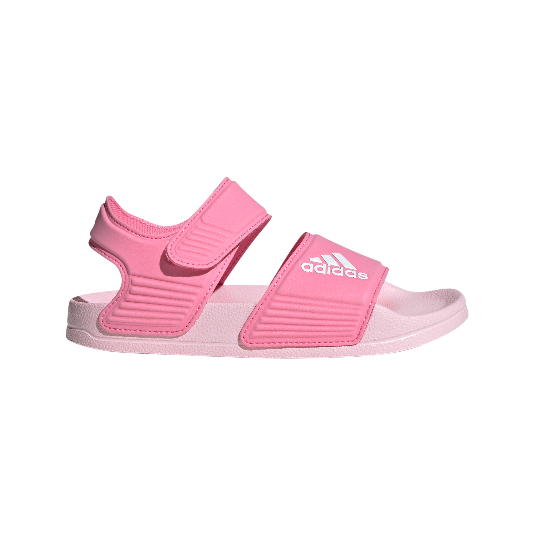 Inspired by classic Adilette slides, these kids' adidas sandals are perfect for sunny days of play in and out of the water. A hook-and-loop strap creates an easy on and off. The quick-drying upper lets them play in comfort until they're back on dry land.